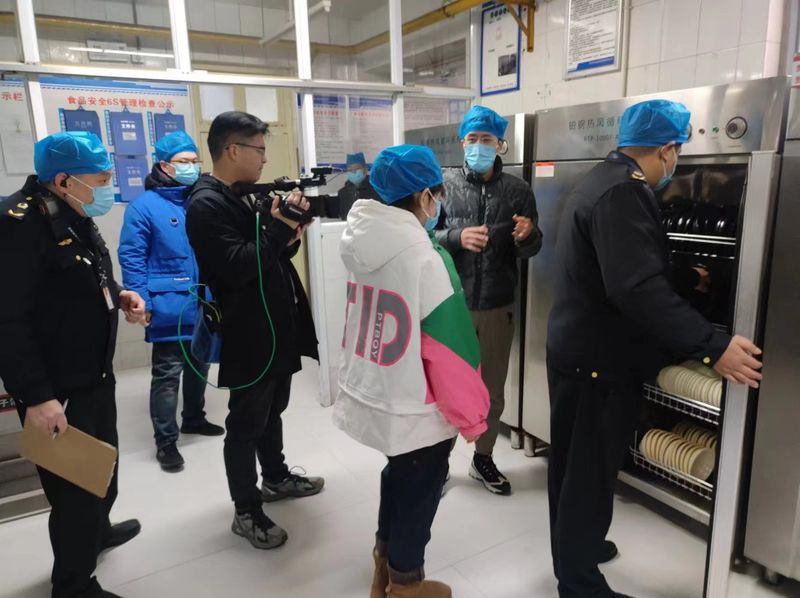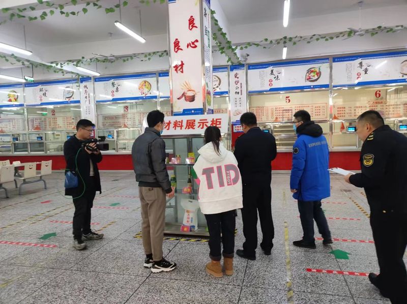 2023年12月29日上午 市市場監(jiān)督管理局陽光執(zhí)法欄目對我公司經(jīng)營的河師大附屬中學(xué)學(xué)生餐廳進行檢查 并對日常管理工作進行肯定